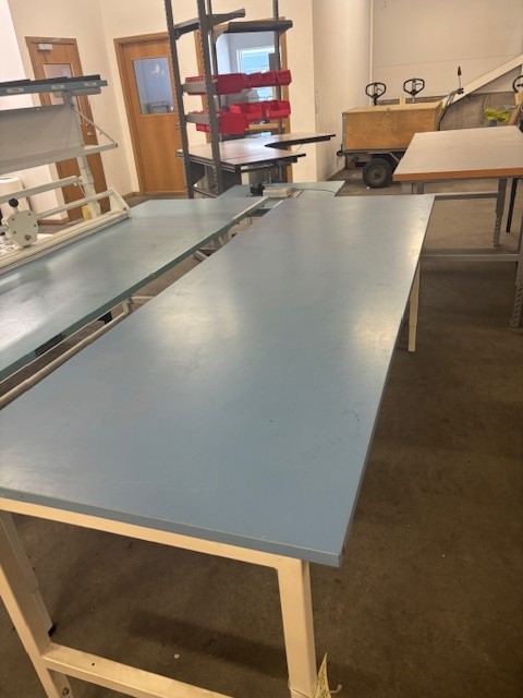Packbord Vit/Mörkblå Begagnad Mått: 2400x800mm Justerbara ben.