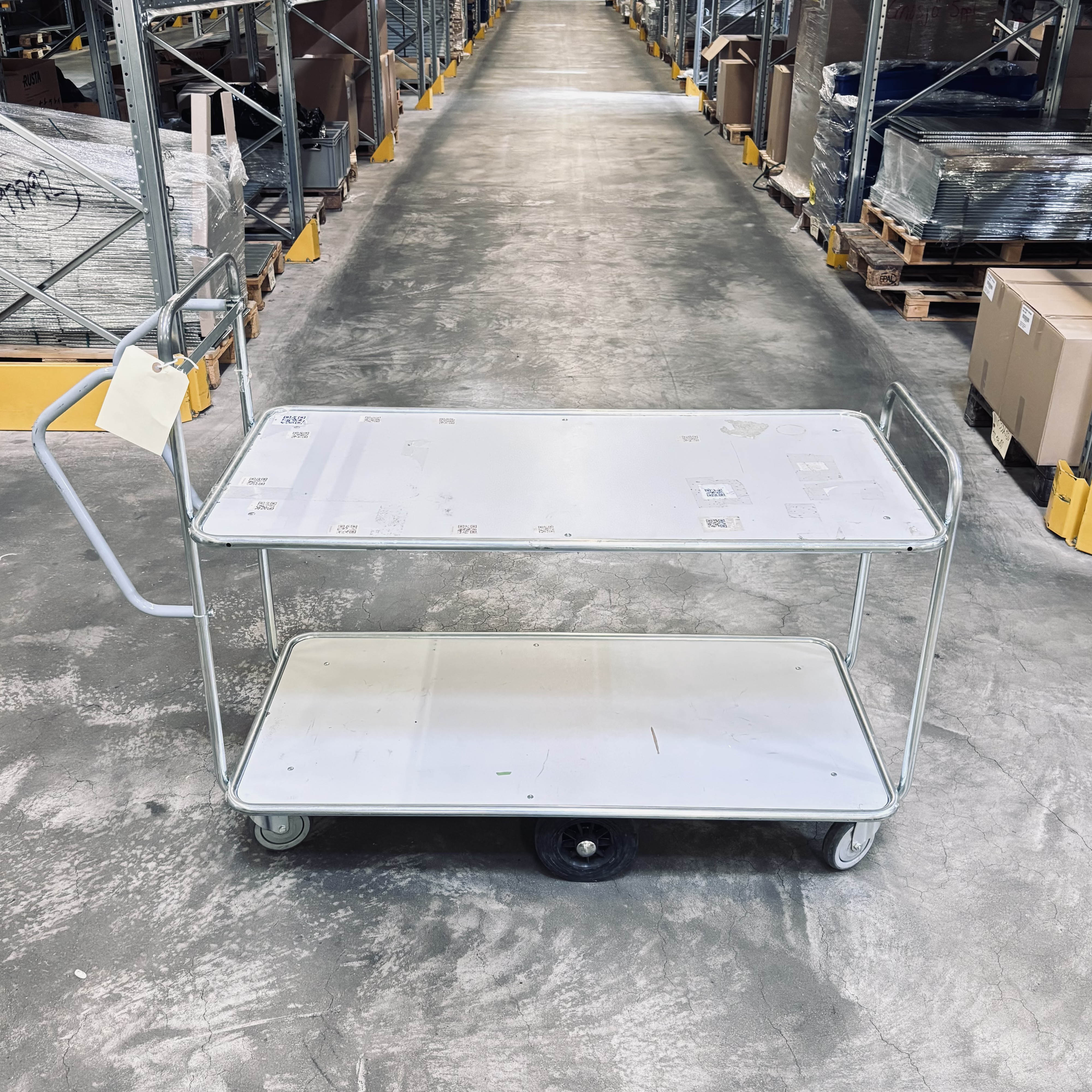 Plockvagn Begagnad Mått: 1520x620x1120 Plattform 1200×800 4 hörnhjul + stödhjul